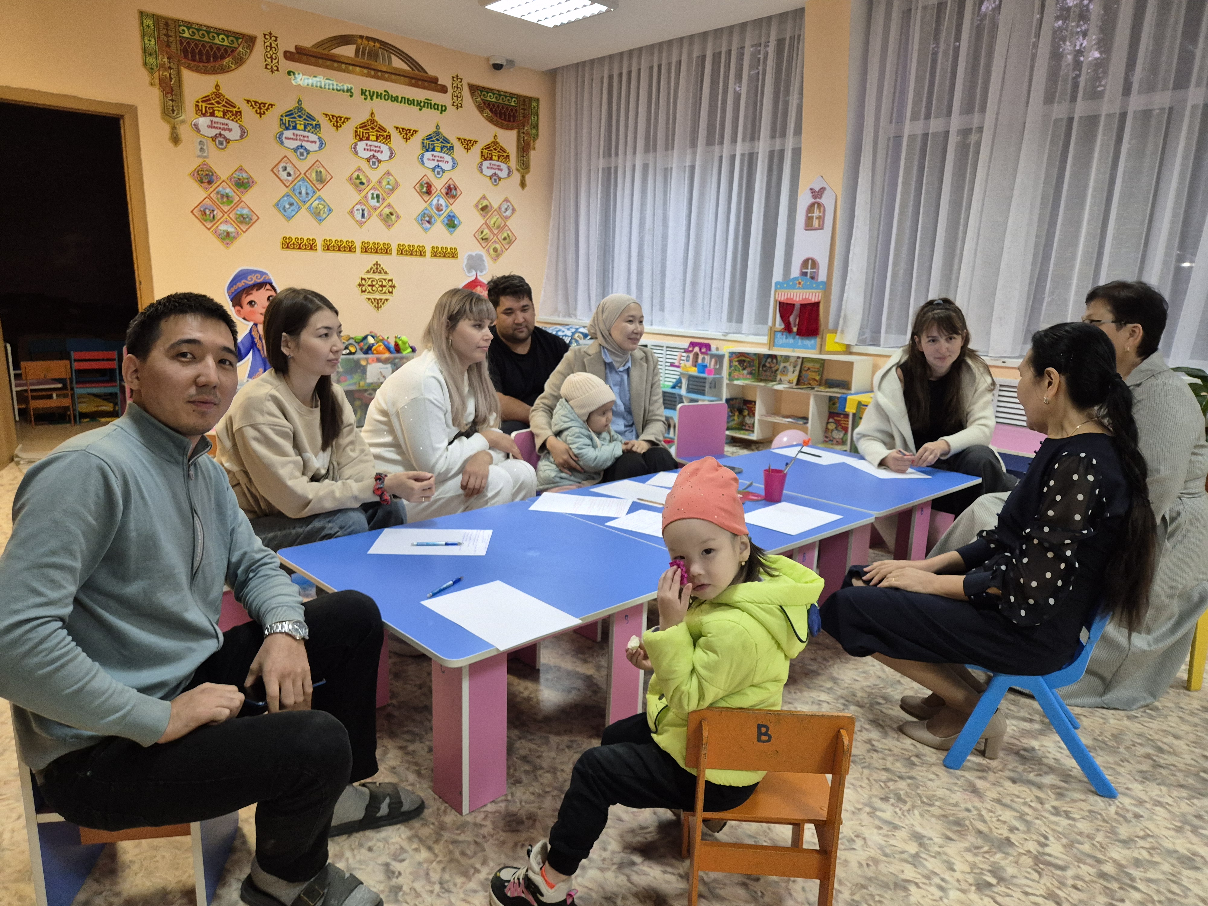 «Ботақан», «Жасұлан», «Нұр», «Кәусар бұлақ» ортаңғы топтарында «Балабақша мен отбасы» тақырыбында ата-аналар жиналысы өтті. Мақсаты:Бала тәрбиесіндегі балабақша мен отбасы ынтымақтастығын нығайту. » ГККП "Ясли сад №110"