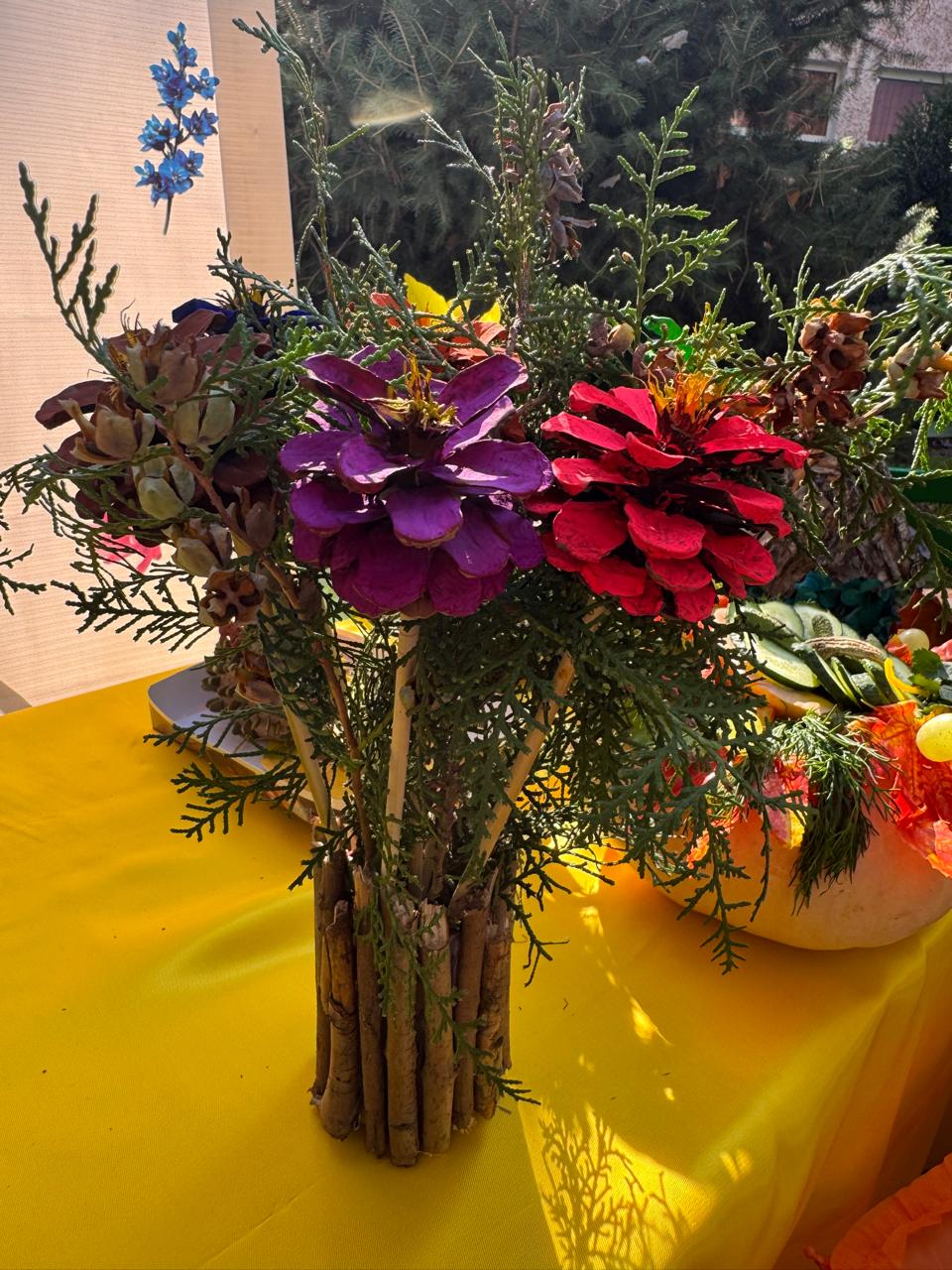 «Күзгі асар» жәрмеңке. Ата-аналар, педагогтар мен балалар жұмысы. /Күзгі өнімдер мен орманның табиғи сыйлықтарын пайдалана отырып жасаған қолөнер бұйымдары/
